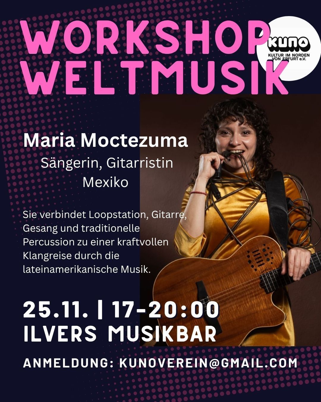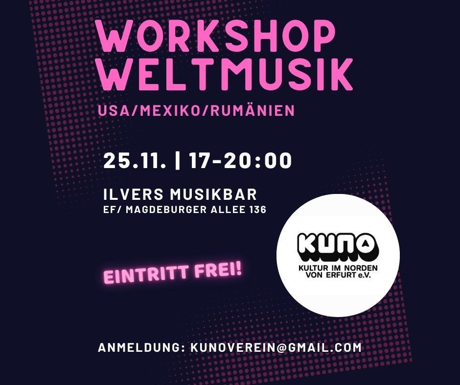 #Weltmusik #Erfurt #Workshop #Kulturverbindet #MariaMoctezuma #PhilippKörber #JosephineAndronic #MusikohneGrenzen #IlversMusikbar #KunoVerein #CulturalExchange #FreeEvent #keaandtherain #erfurtkultur #erfurt